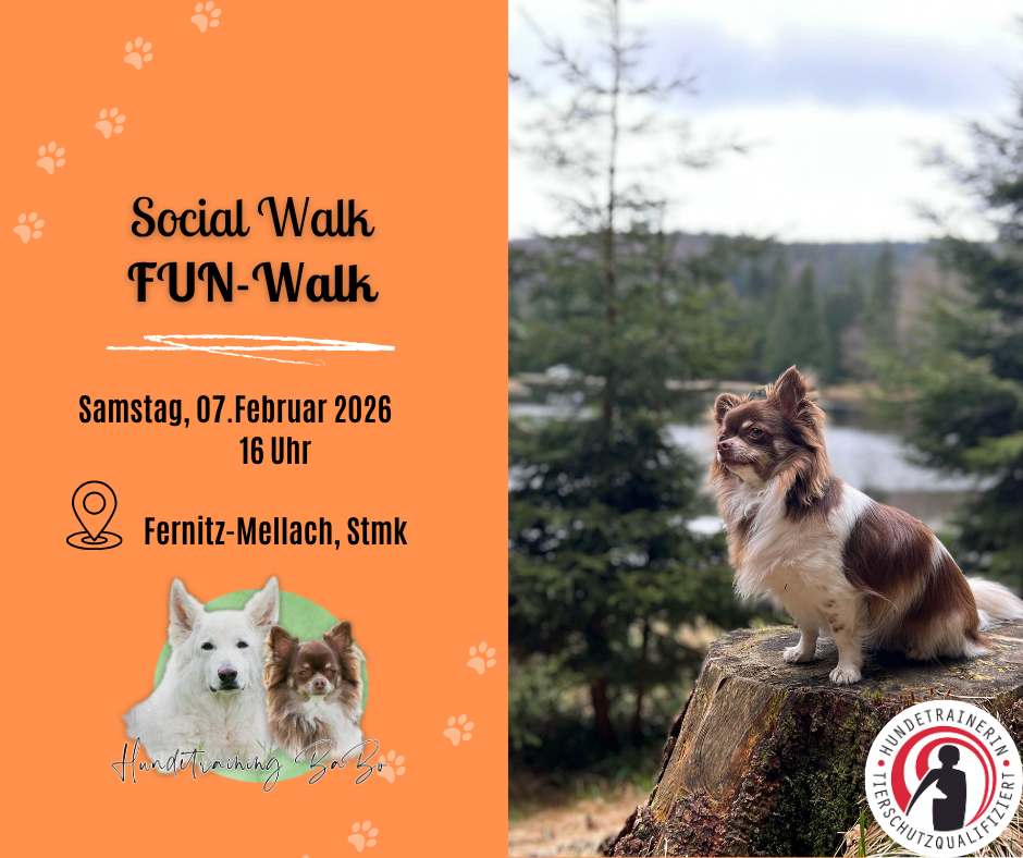 Lasst uns die Ruhe der Natur und die Gemeinschaft in dieser besinnlichen Zeit genießen. Der Social Walk ist für alle Hunde geeignet – unabhängig von Rasse, Alter oder kleinen Baustellen.