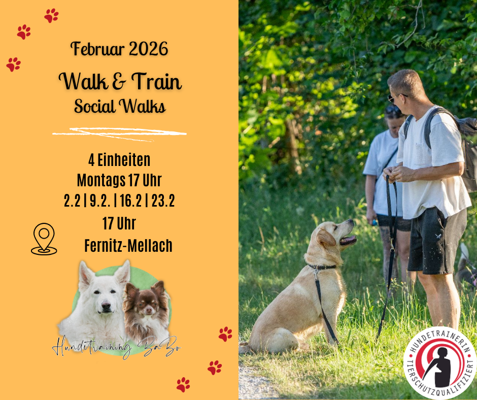 Mach deinen Spaziergang zur Trainingsrunde: Bei unseren Social Walks vereinen wir Grundgehorsamkeitstraining mit der natürlichen Umgebung des Spaziergangs – unserem Alltag. Wir haben die Möglichkeit mit unseren Hunden, wichtige Signale wie “Sitz” -”Platz” – “Fuß” – etc. in realitätsnahen Situationen zu üben. Ein Spaziergang kann so viel mehr sein als einfach “nur Gassi”.